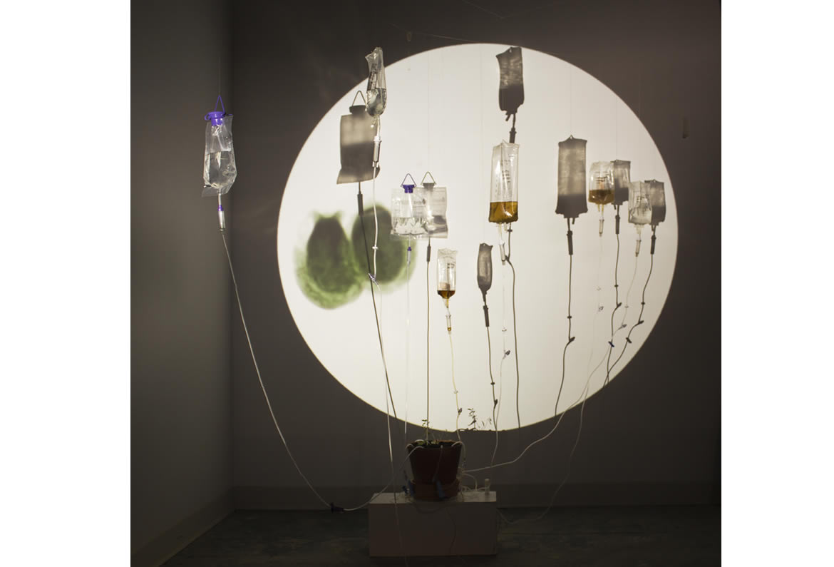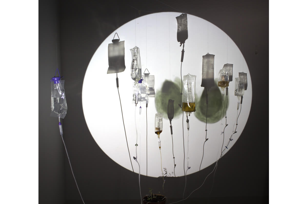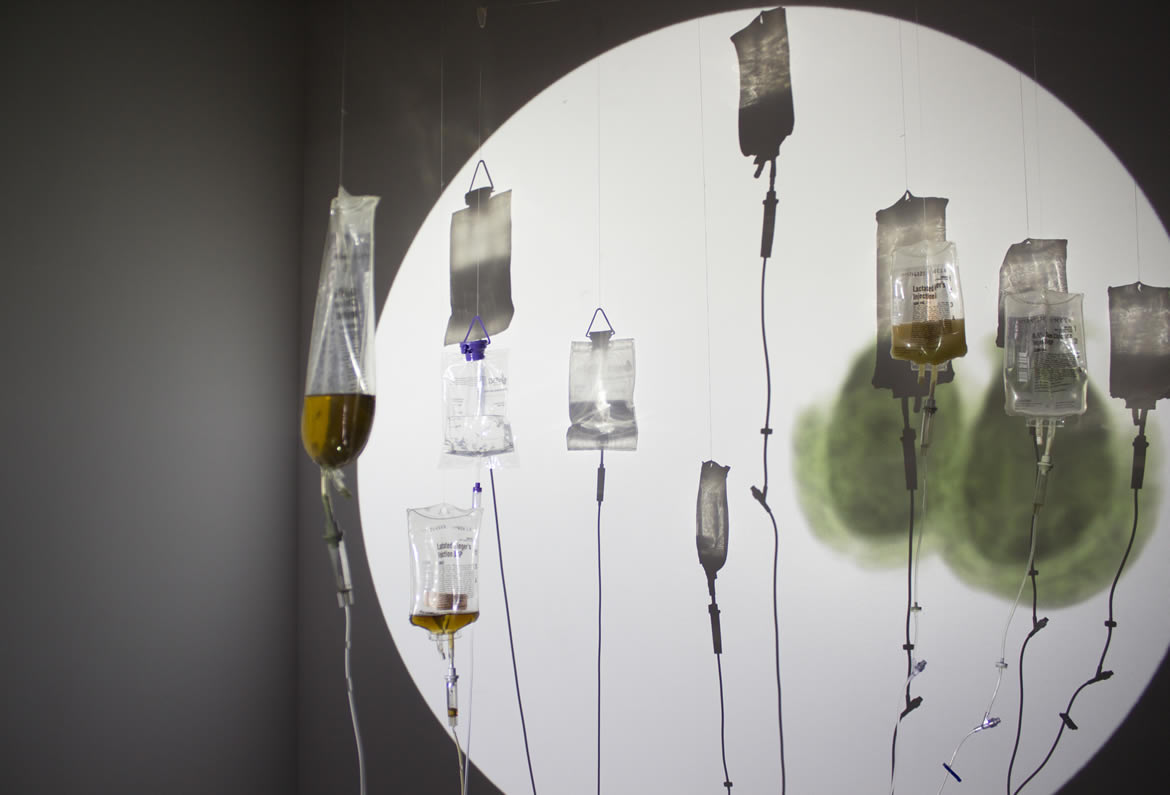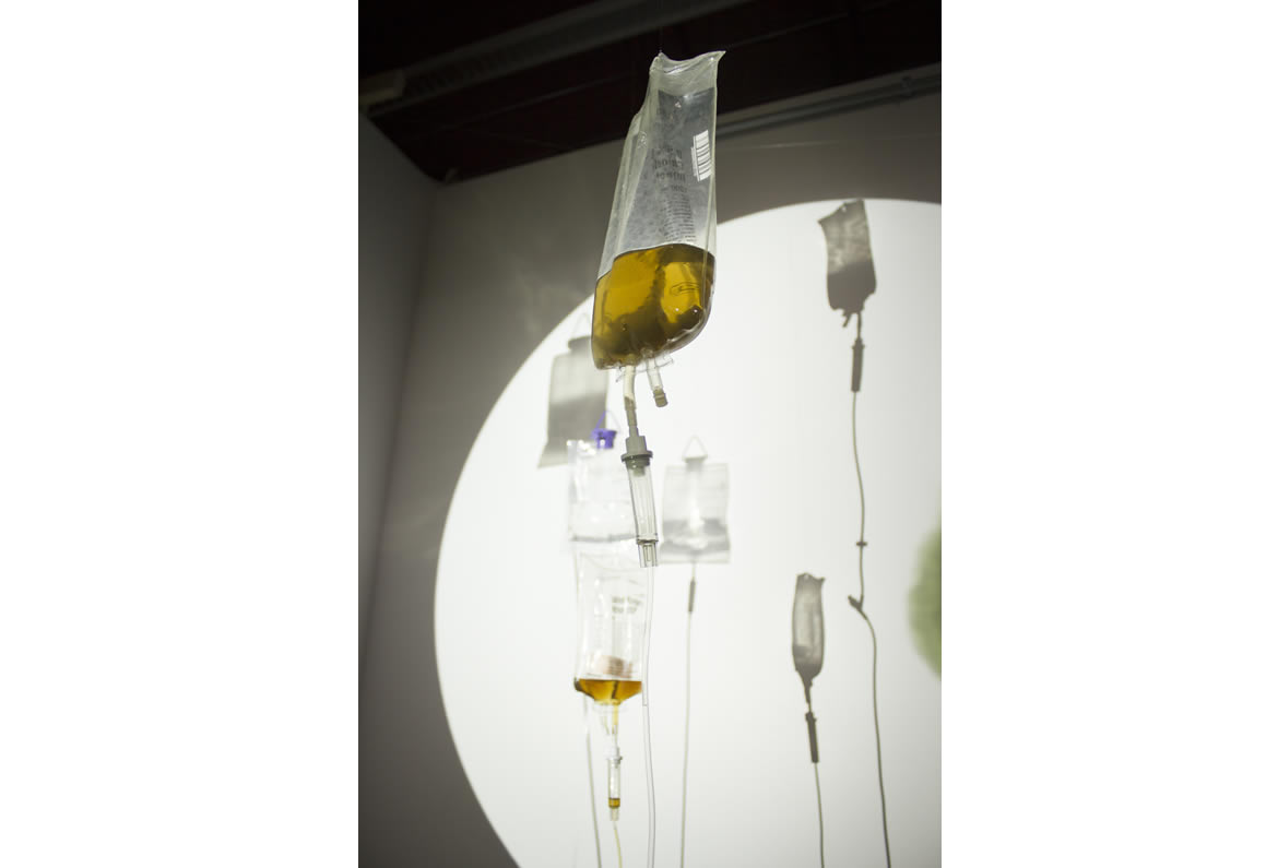 suggesting that of an image seen through a microscope. I used seven IV bags to